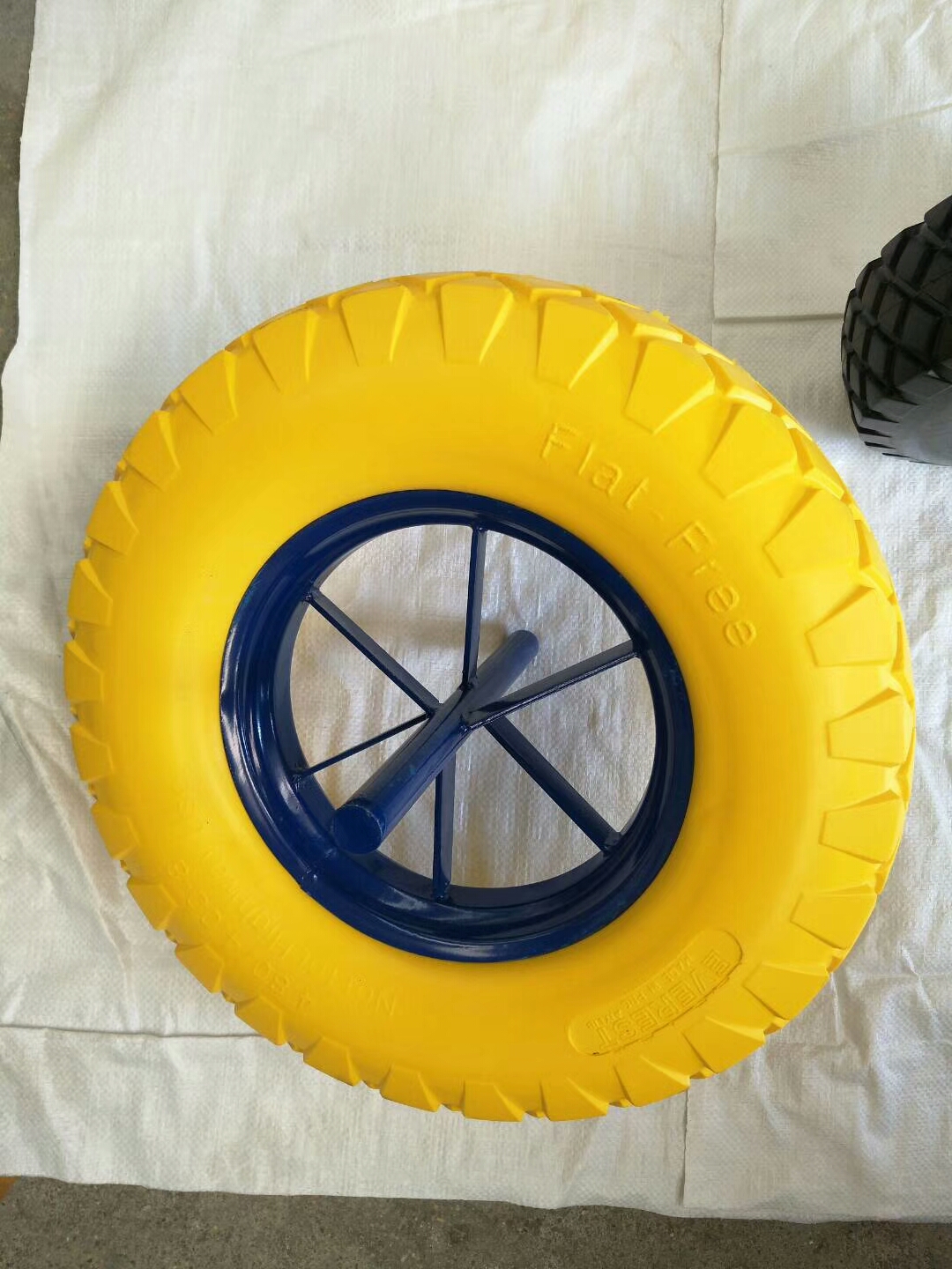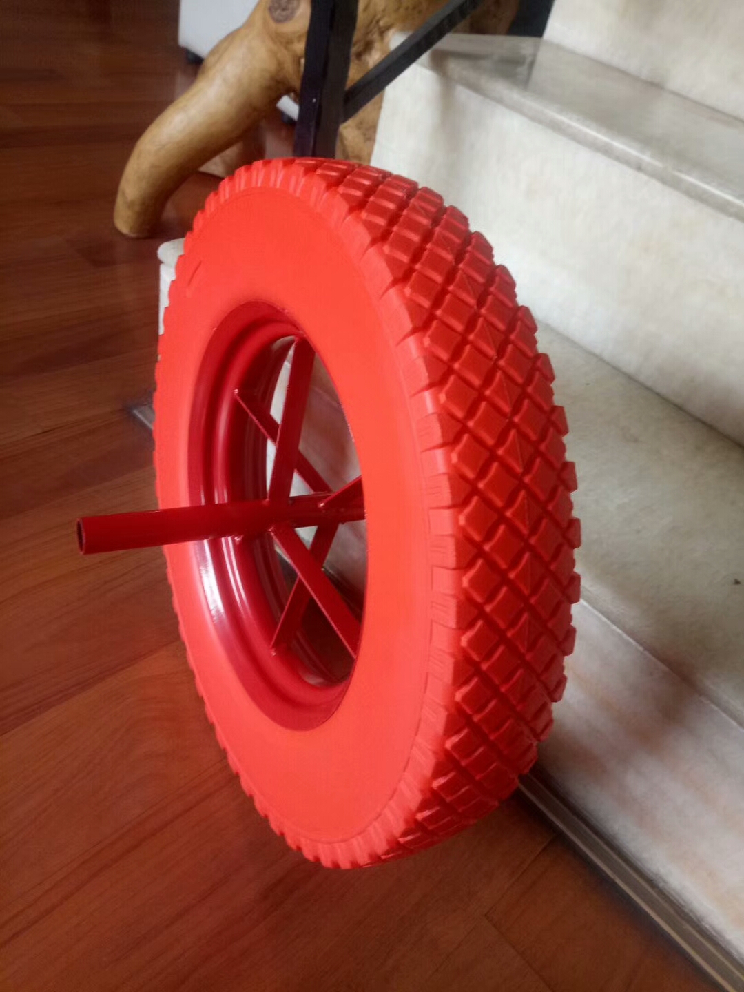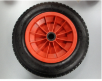 Our wheel barrow tire and inner tube, solid rubber wheel and crumb wheels, semi pneumatic wheel,Flat Free, PU foam wheel,Penumatic Rubber wheel, PU wheel bearing rim and metal rim are producted in our own company.